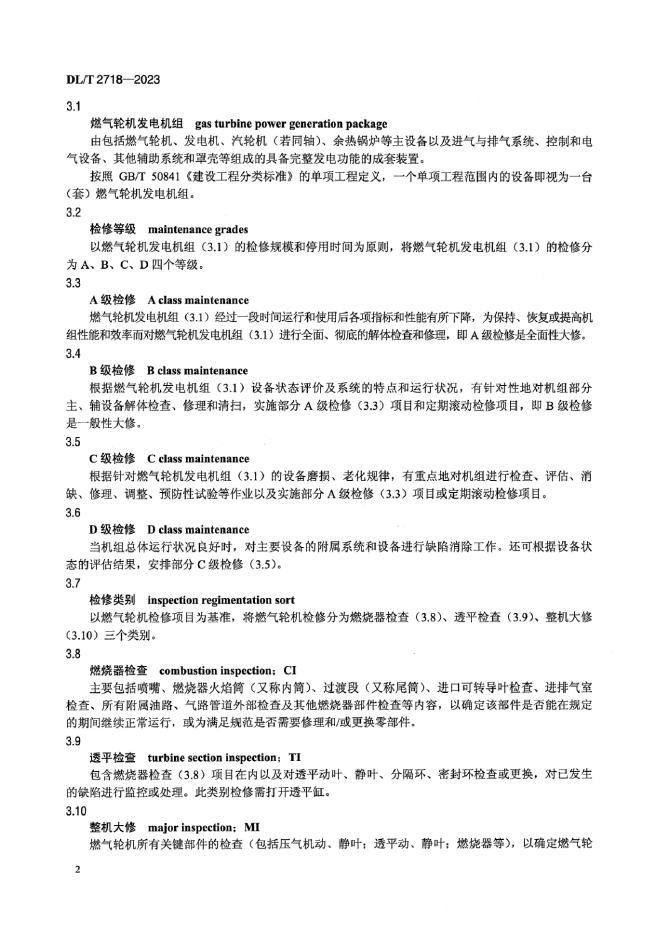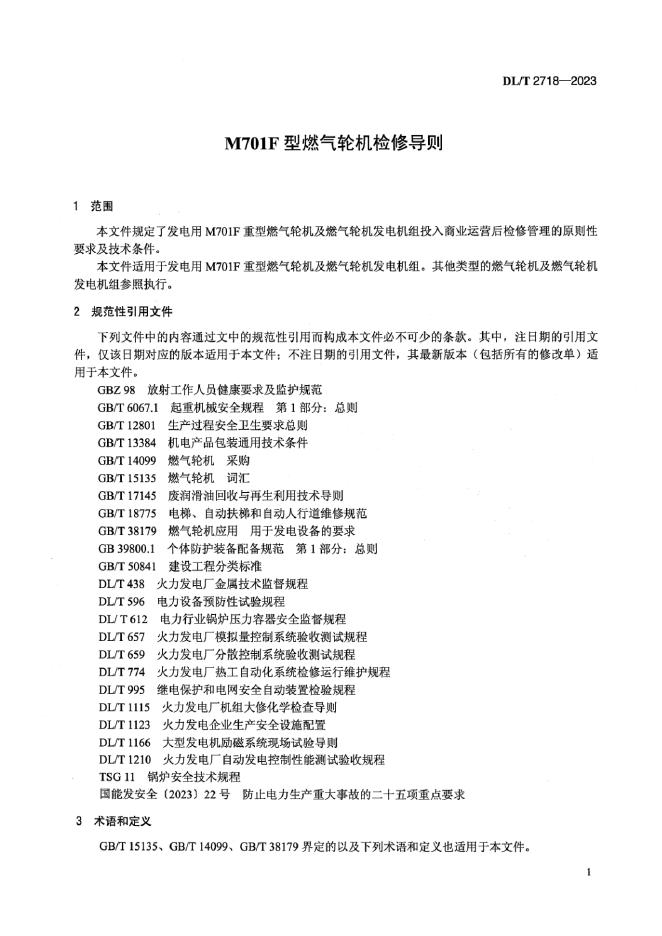 DL/T 2718-2023 M701F型燃气轮机检修导则