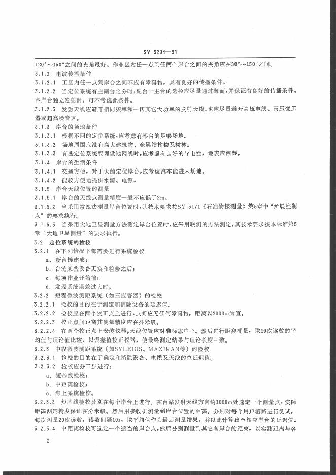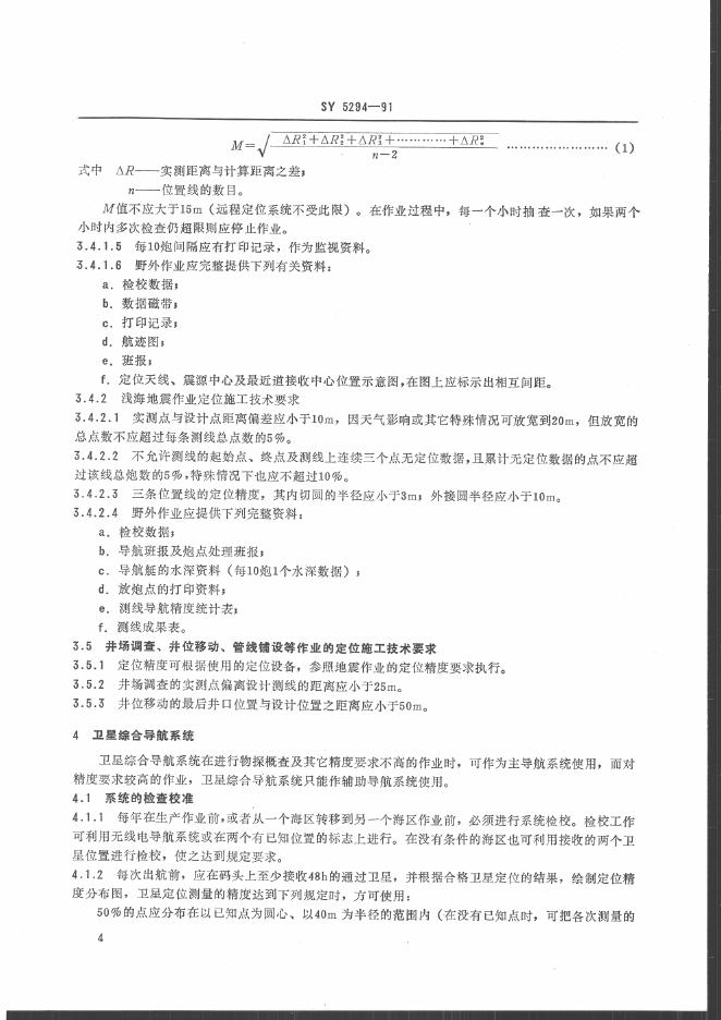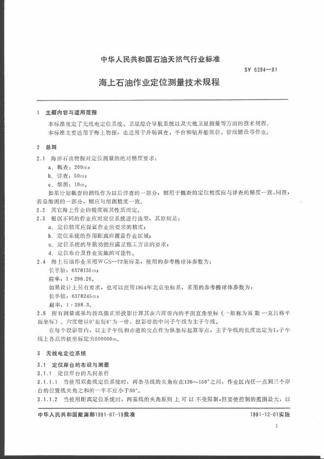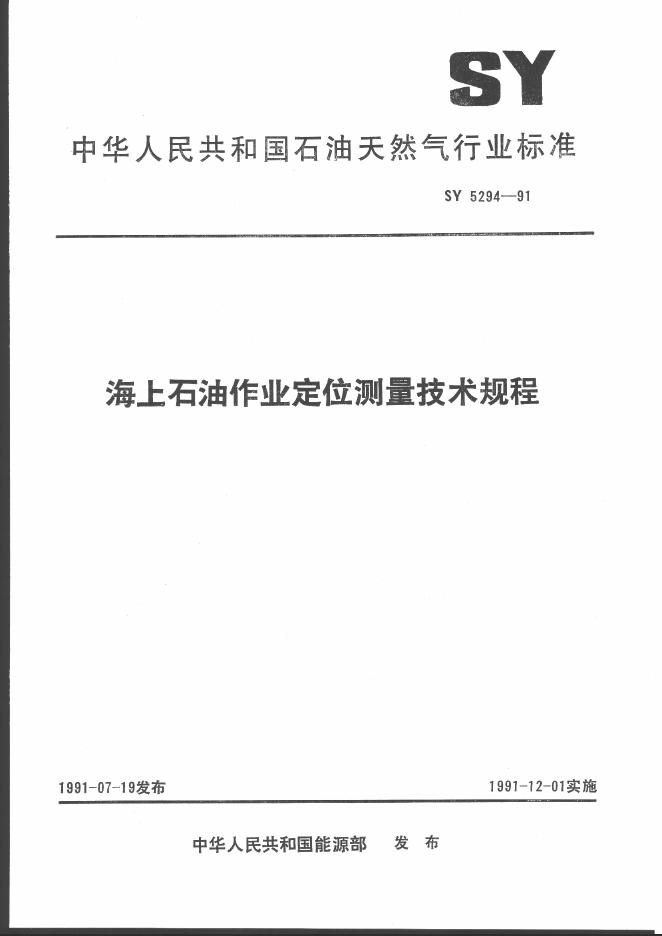 SY 5294-1991 海上石油作为定位测量技术规程