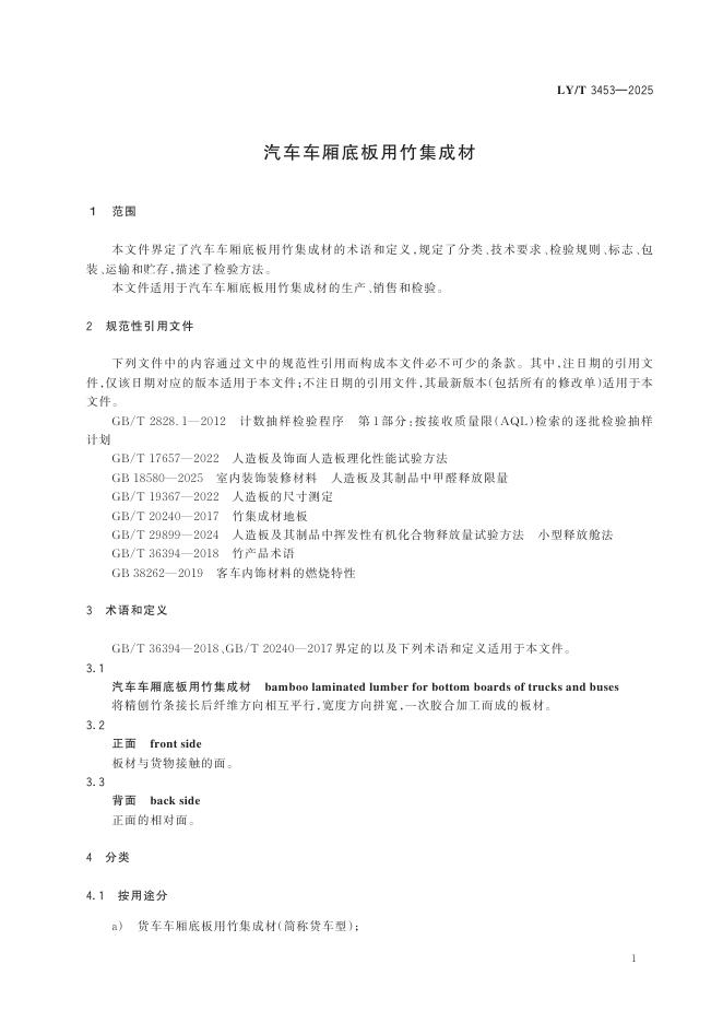 LY/T 3453-2025 汽车车厢底板用竹集成材