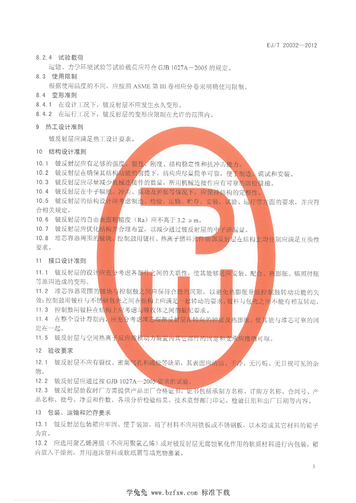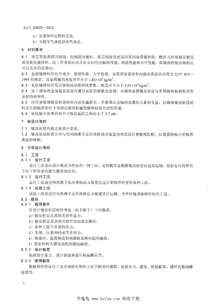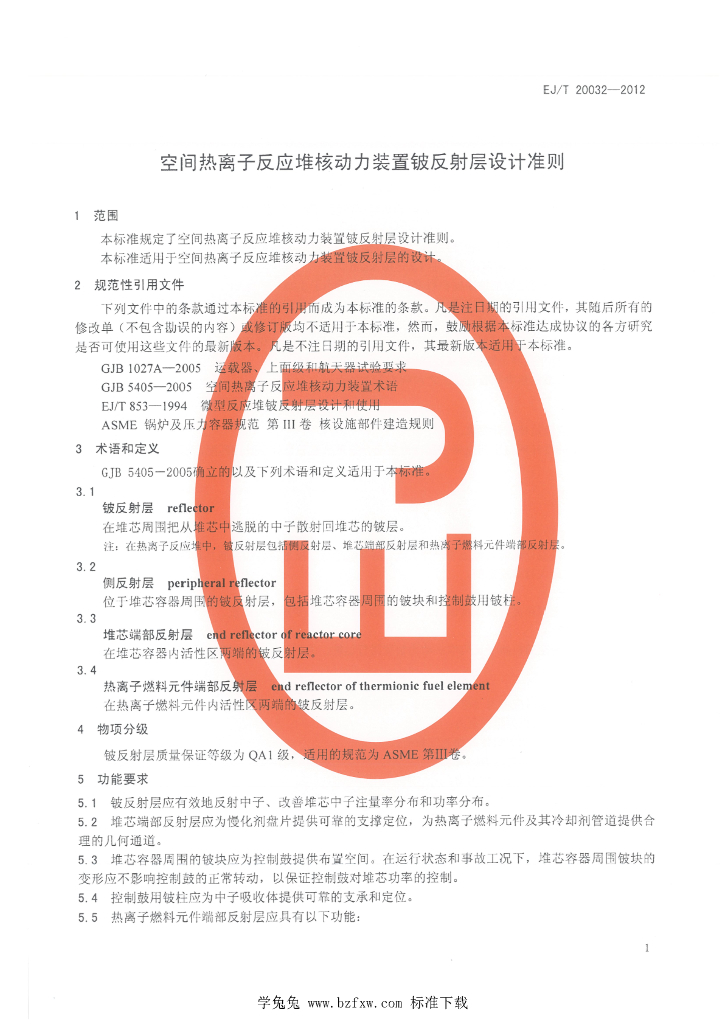 EJ/T 20032-2012 空间热离子反应堆核动力装置铍反射层设计准则