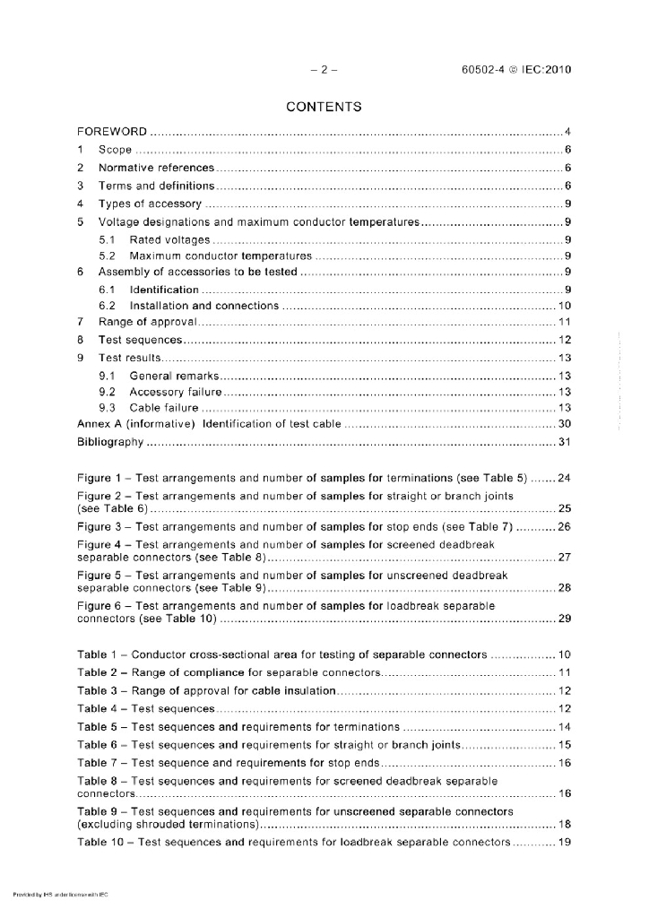 IEC 60502-4:2010 额定电压从(Um=1.2kV)到30kV(Um=36kV)挤包绝缘电力电缆及其附件 第4部分 额定电压从6kV(Um=7.2kV)到30kV(Um=3.6kV)电缆附件试验要求