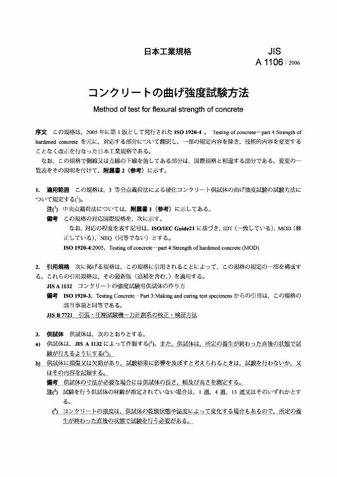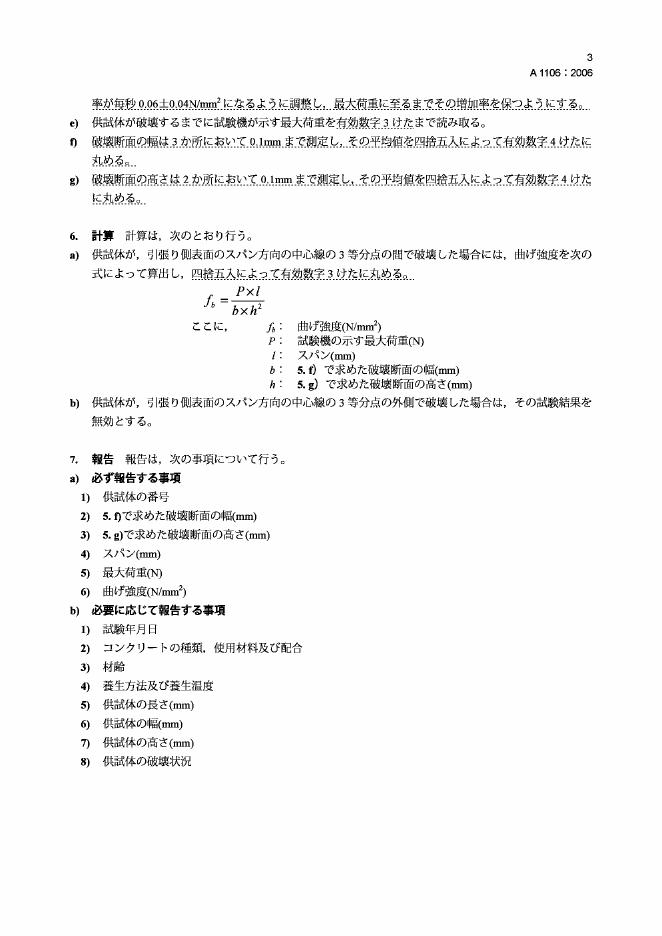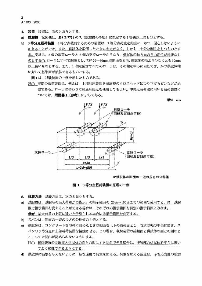 JIS A1106-2006 Method of test for flexural strength of concrete