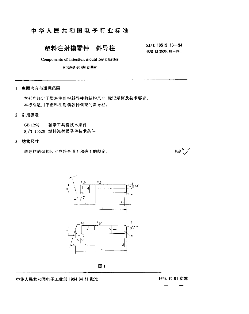 SJ/T 10519.16-1994 塑料注射模零件 斜导柱