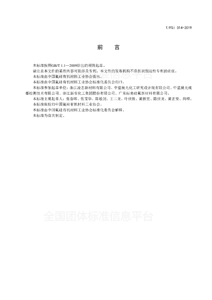 浙江凌志新材料有限公司、中蓝晨光化工研究设计院有限公司、中蓝晨光成都检测技术有限公司、浙江新安化工集团股份有限公司、广东标美硅氟新材料有限公司