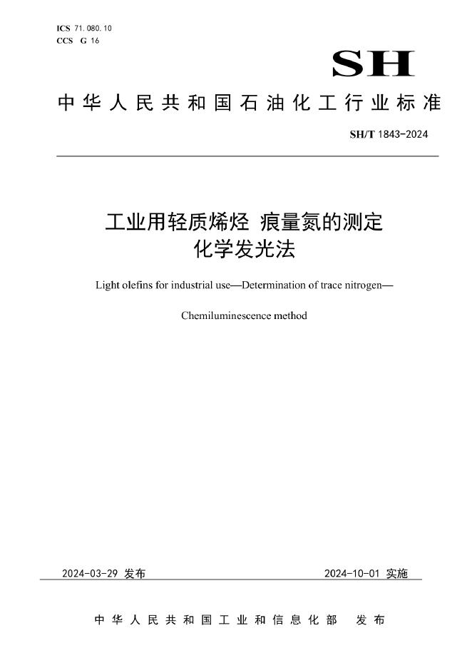 SH/T 1843-2024 工业用轻质烯烃 痕量氮的测定 化学发光法