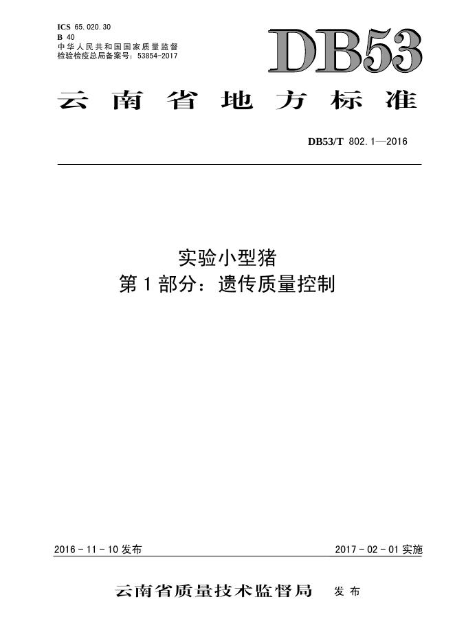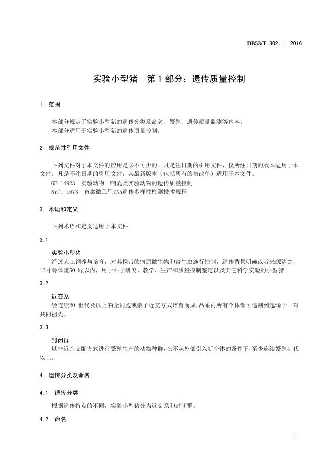 DB53/T 802.1-2016 实验小型猪 第1部分:遗传质量控制