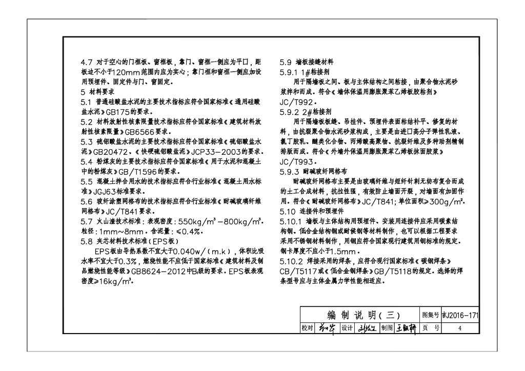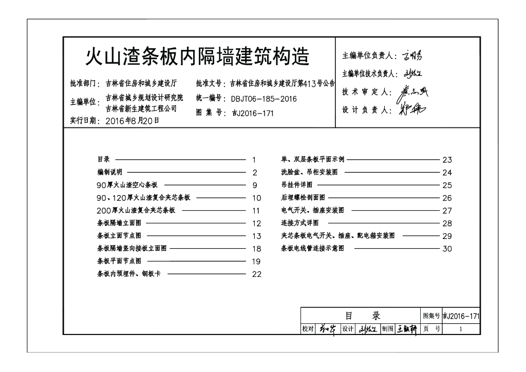 吉J2016-171 火山渣条板内隔墙建筑构造图集