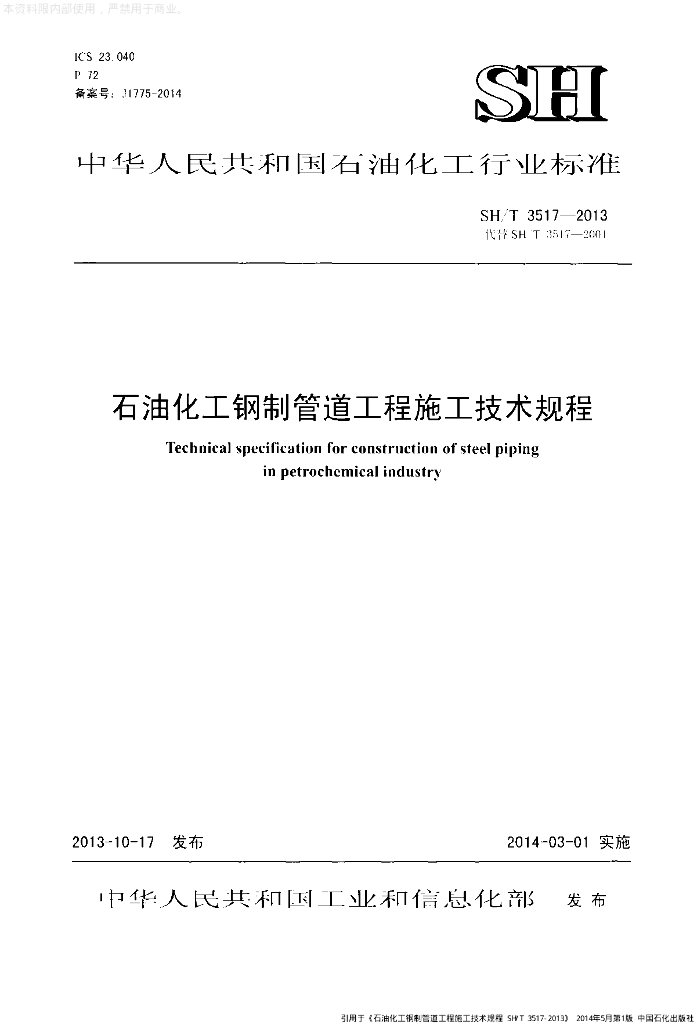 SH/T 3517-2013 石油化工钢制管道工程施工技术规程(附条文说明)