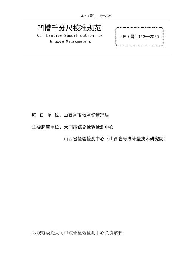 JJF(晋)113-2025 凹槽千分尺校准规范