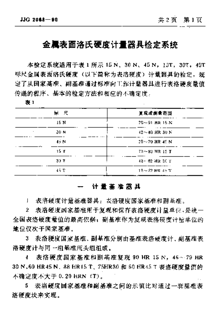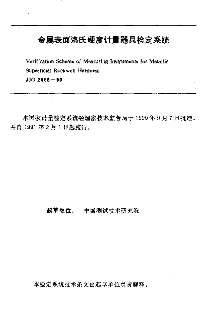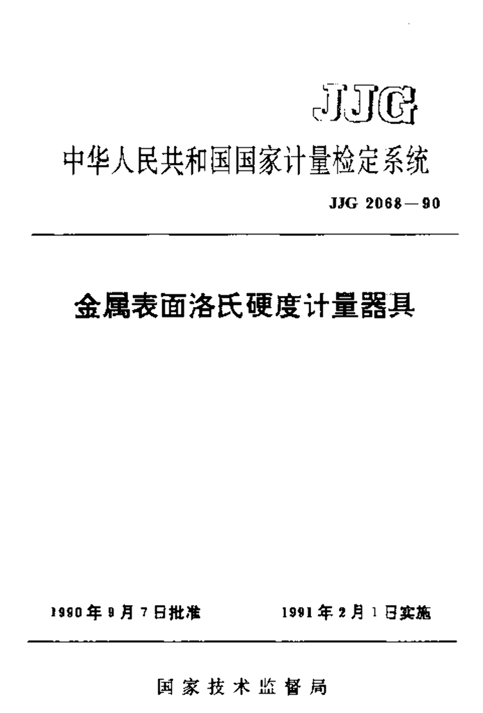 JJG 2068-1990 金属表面洛氏硬度计量器具检定系统
