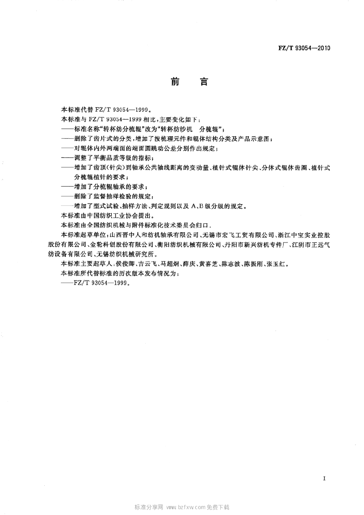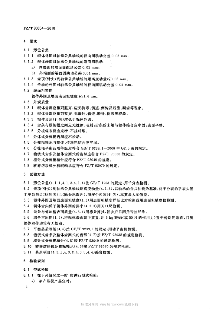 FZ/T 93054-2010 转杯纺纱机 分梳辊