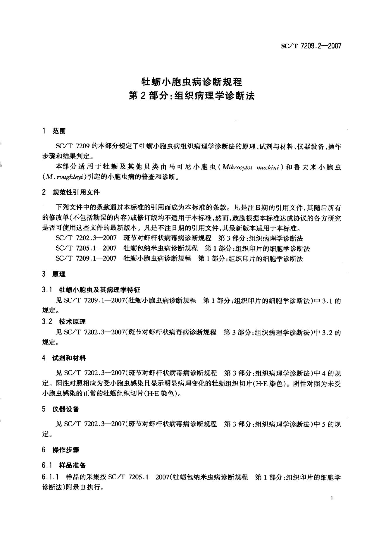 SC/T 7209.2-2007 牡蛎小胞虫病诊断规程 第2部分:组织病理学诊断法