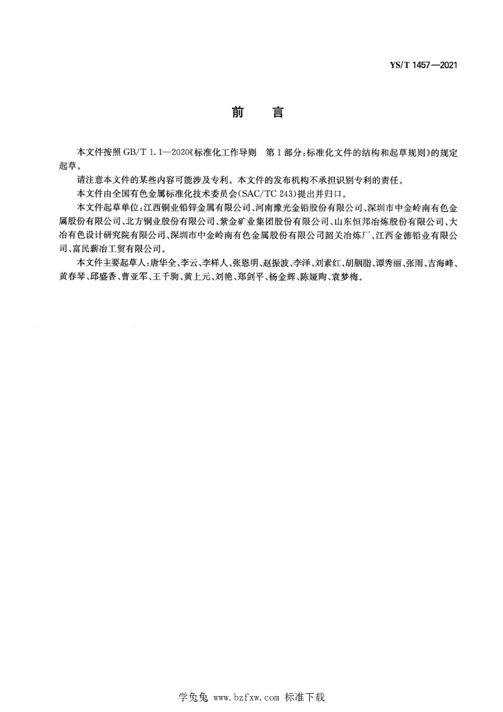 江西铜业铅锌金属有限公司、河南豫光金铅股份有限公司、深圳市中金岭南有色金属股份有限公司、北方铜业股份有限公司、紫金矿业集团股份有限公司、山东恒邦冶炼股份有限公司、大冶有色设计研究院有限公司、深圳市中金岭南有色金属股份有限公司韶关冶炼厂、江西金德铅业有限公司、富民薪冶工贸有限公司