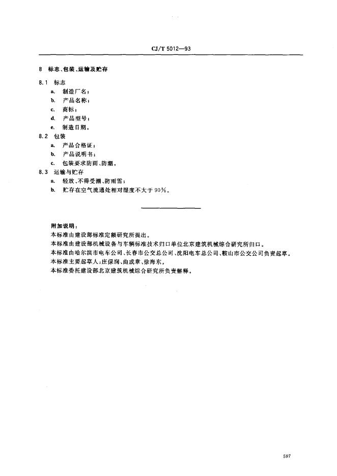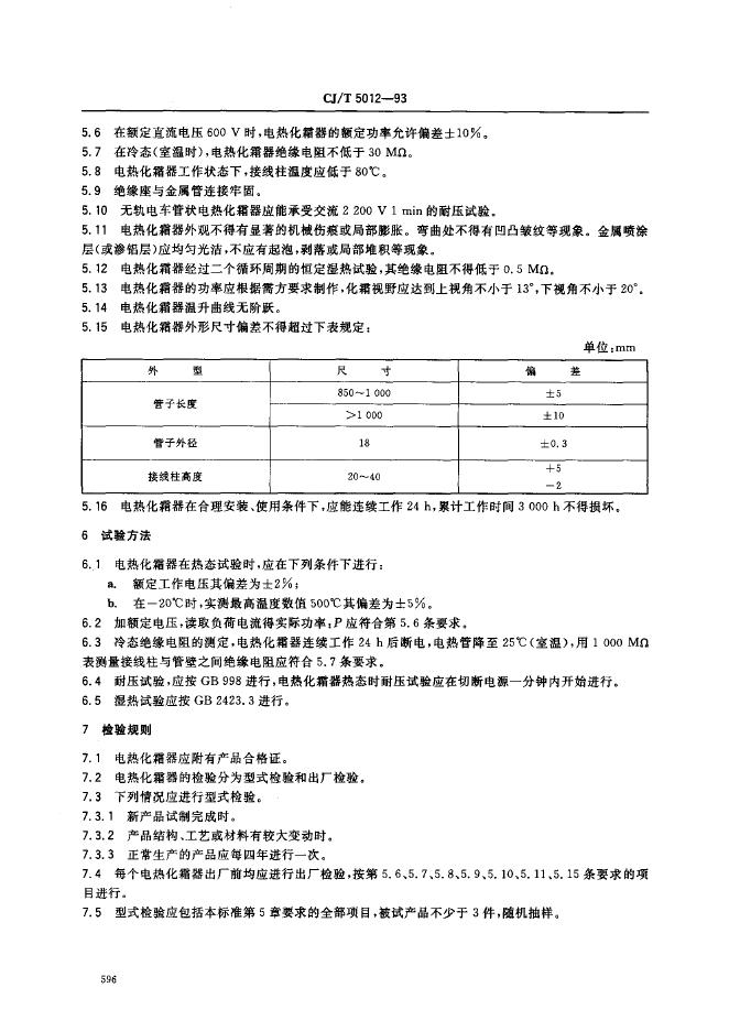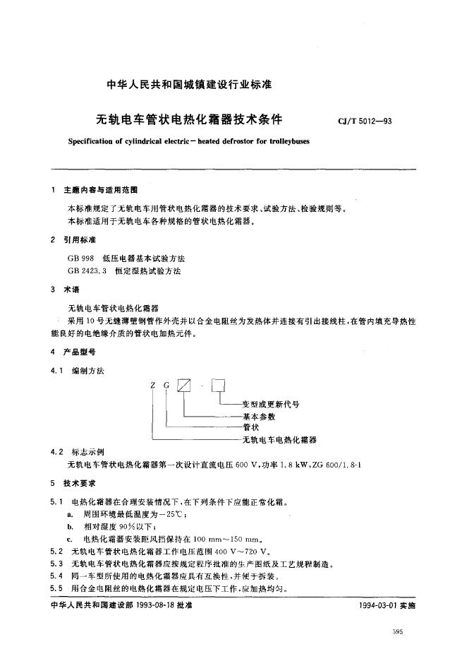 CJ/T 5012-1993 无轨电车管状电热化霜器技术条件