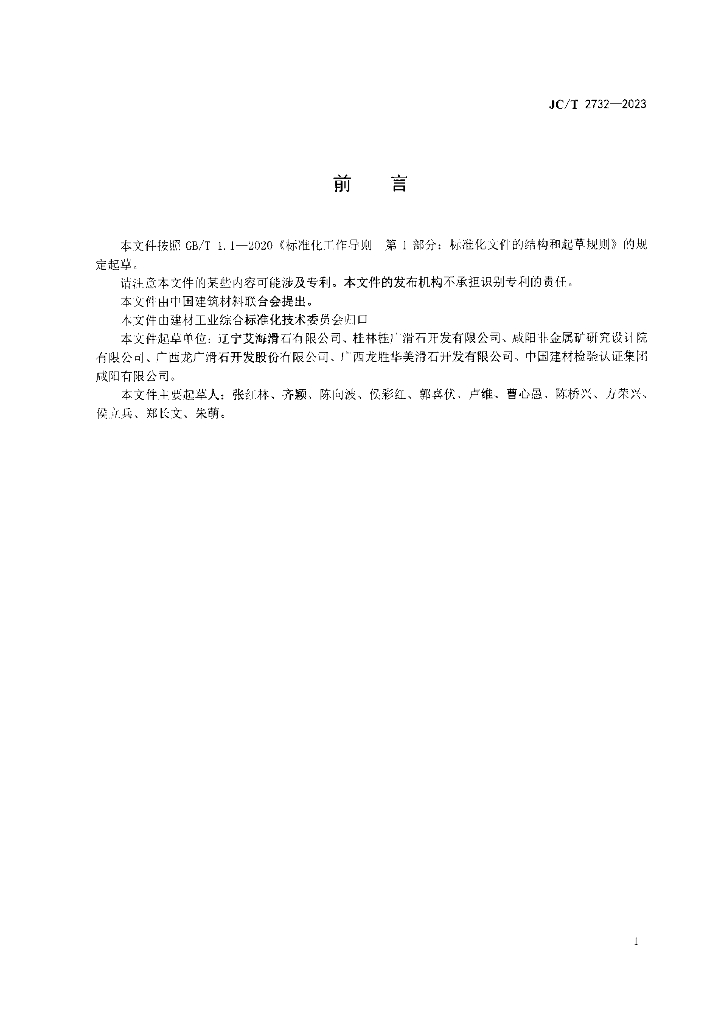 辽宁艾海滑石有限公司、桂林桂广滑石开发有限公司、咸阳非金属矿研究设计院有限公司、广西龙广滑石开发股份有限公司、广西龙胜华美滑石开发有限公司、中国建材检验认证集团咸阳有限公司