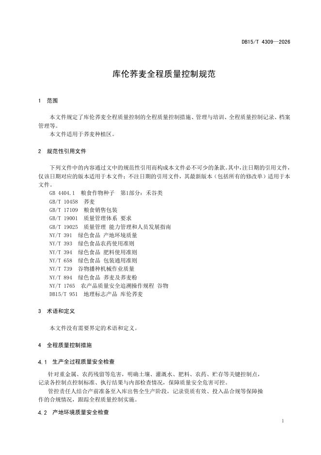 DB15/T 4309-2026 库伦荞麦全程质量控制规范