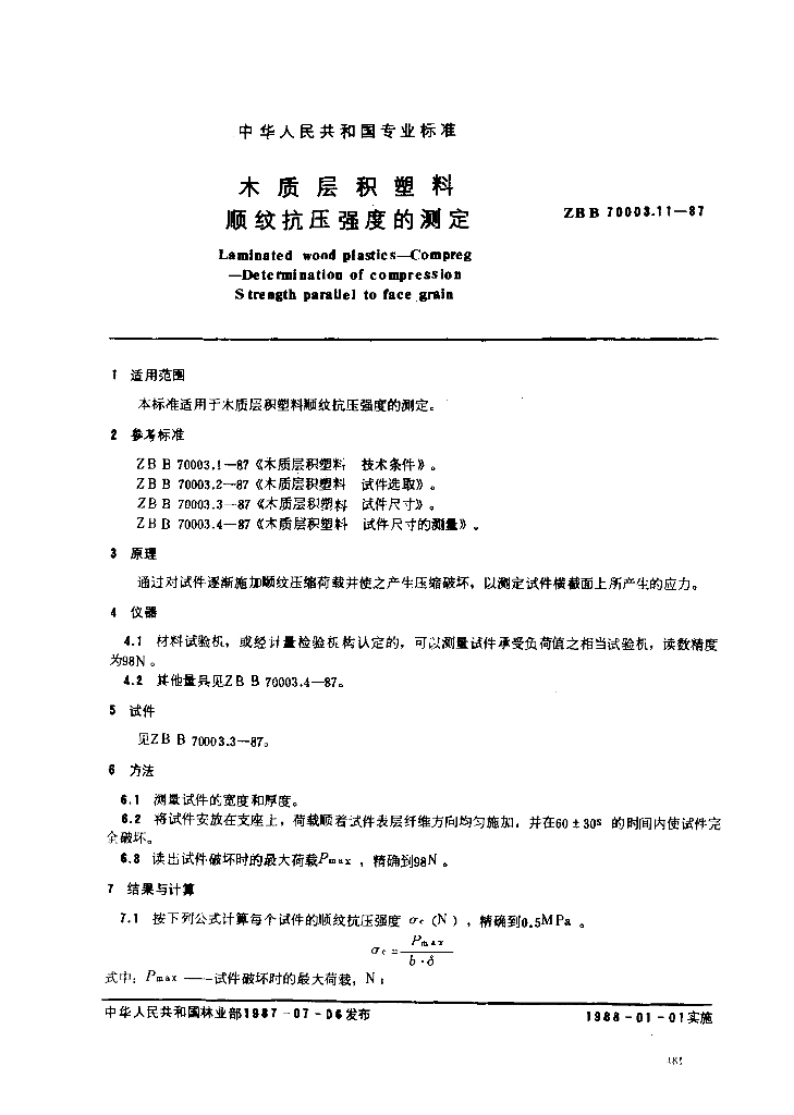 LY/T 1411-1999 木质层积塑料顺纹抗压强度的测定