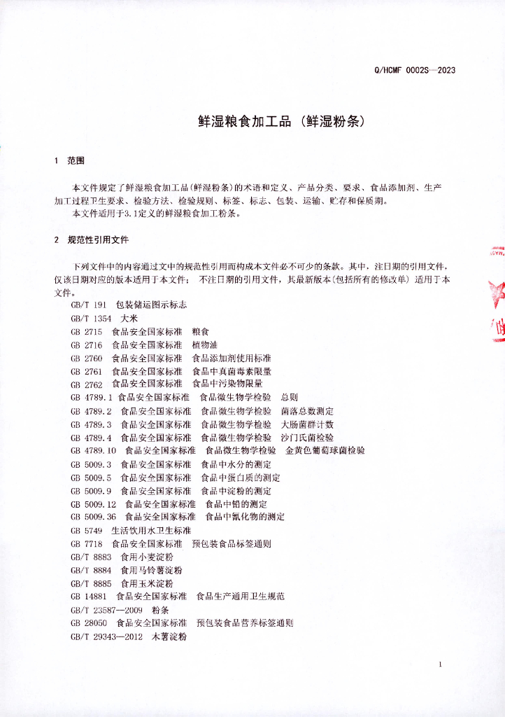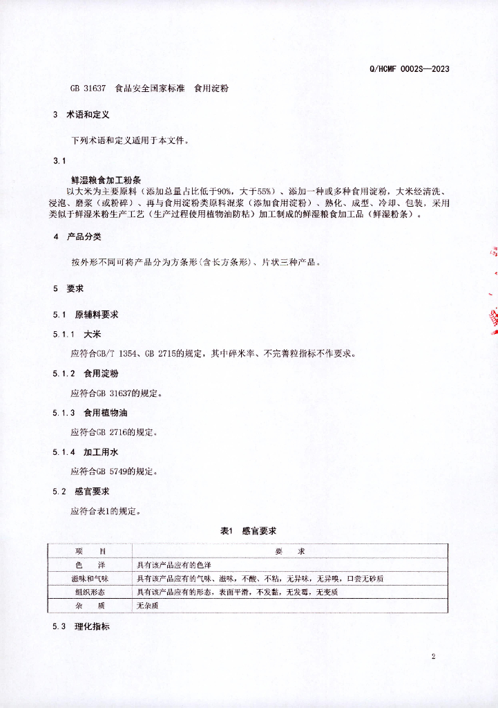 Q/HCMF 0002S-2023 鲜湿粮食加工品(鲜湿粉条)横县那阳镇和昌米粉加工厂