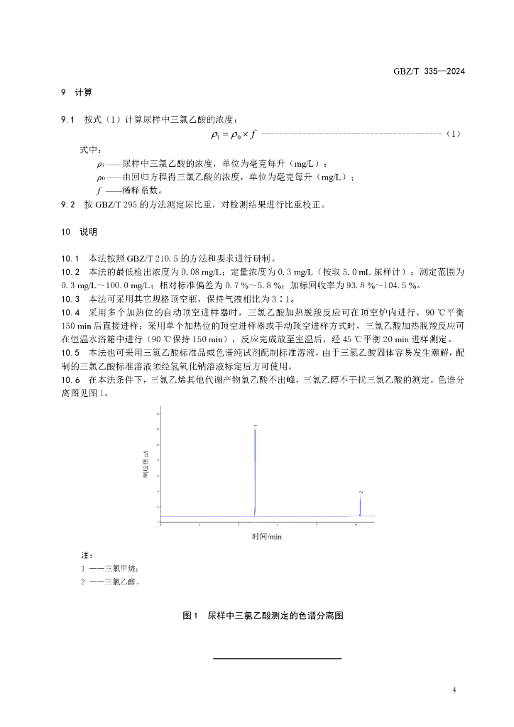 GBZ/T 335-2024 尿中三氯乙酸测定标准 顶空气相色谱法
