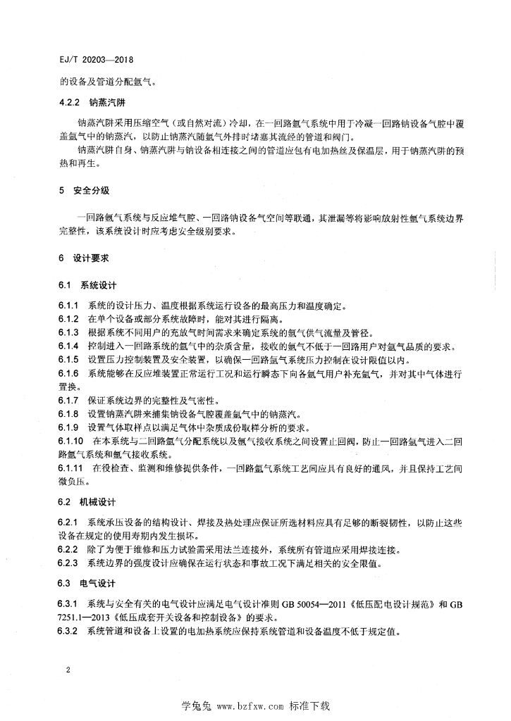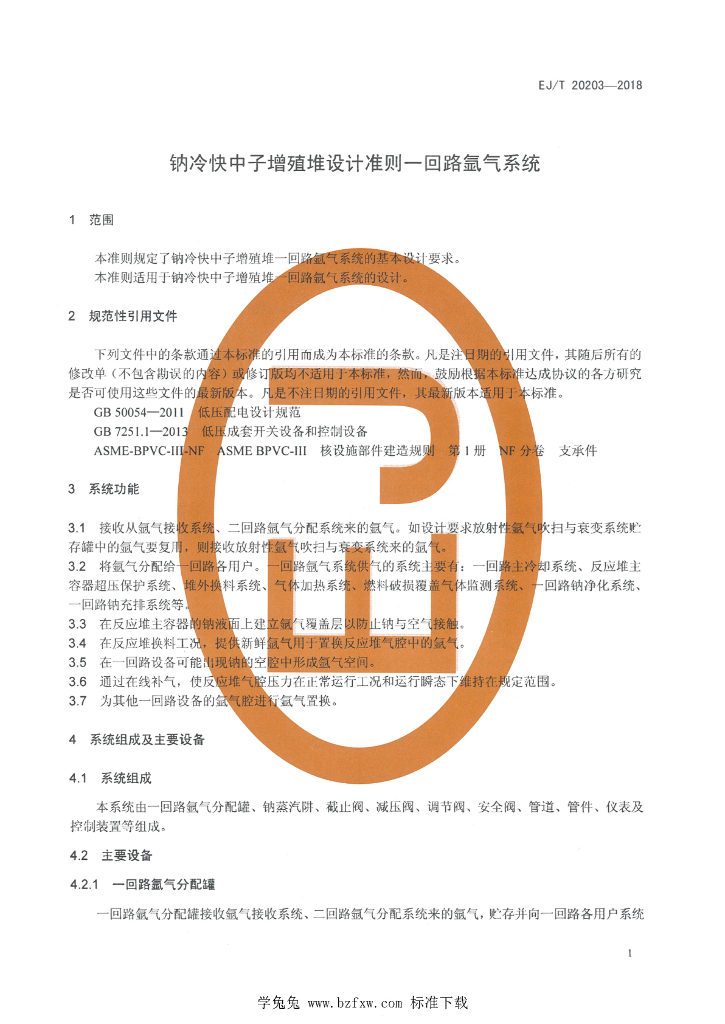 EJ/T 20203-2018 钠冷快中子增殖堆设计准则 一回路氩气系统