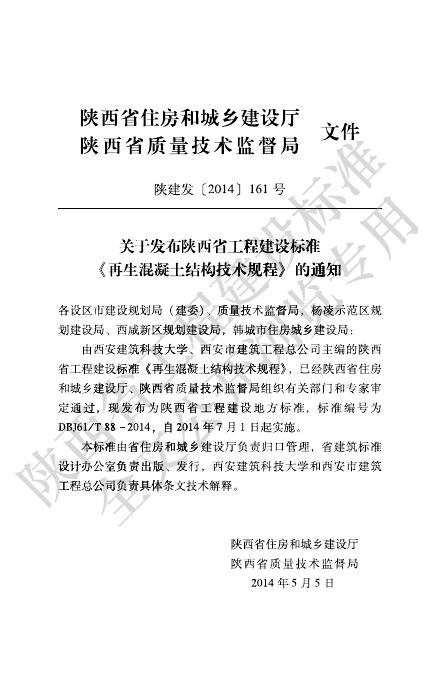 DBJ61/T 88-2014 再生混凝土结构技术规程