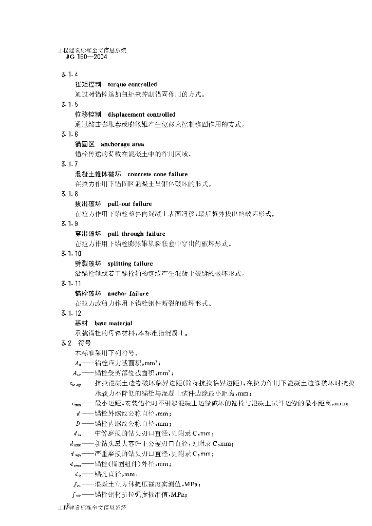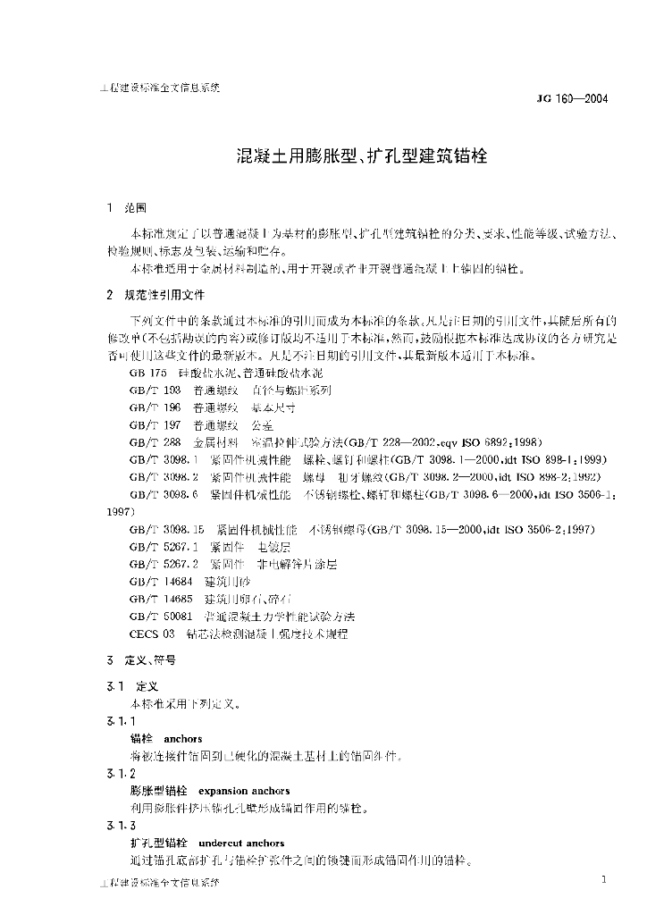JG/T 160-2004 混凝土用膨胀型、扩孔型建筑锚栓