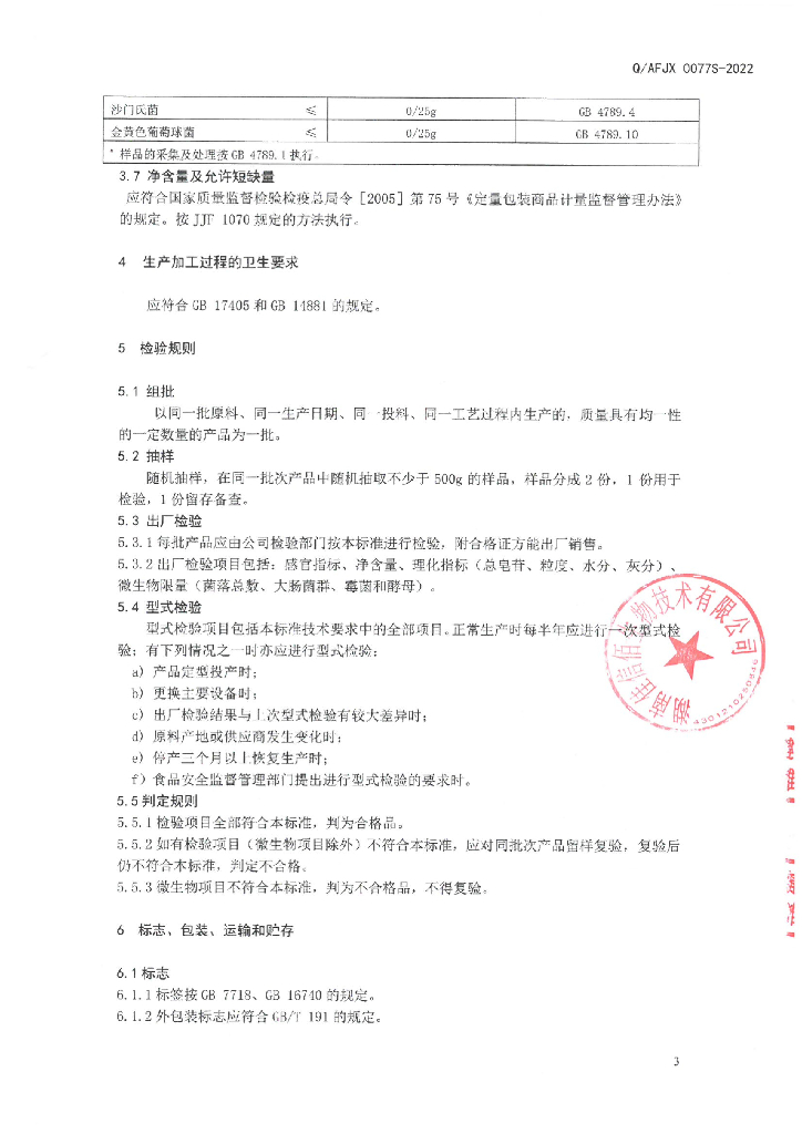 Q/AFJX 0077S-2022 保健食品原料 西洋参粉