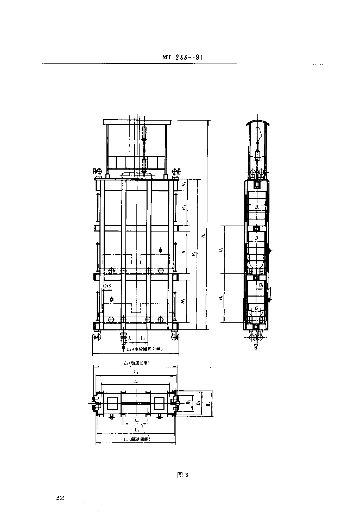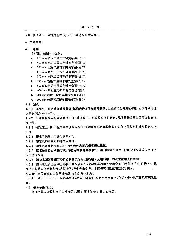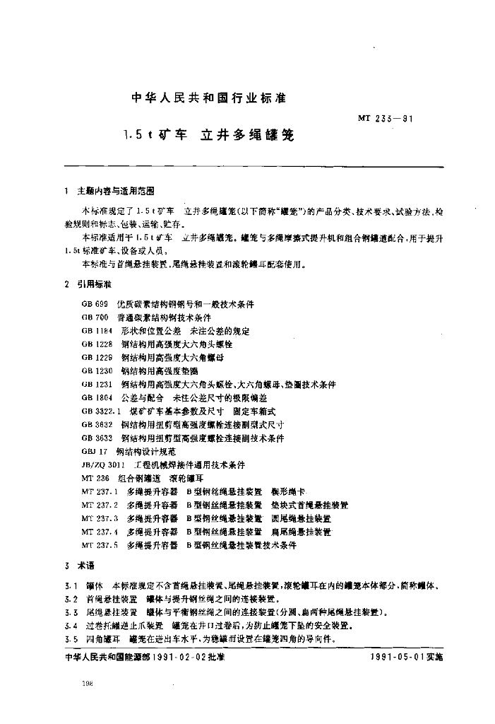 MT 233-1991 1.5t矿车.立井多绳罐笼