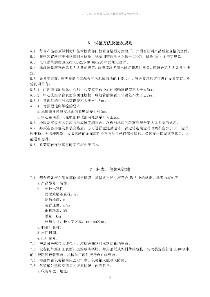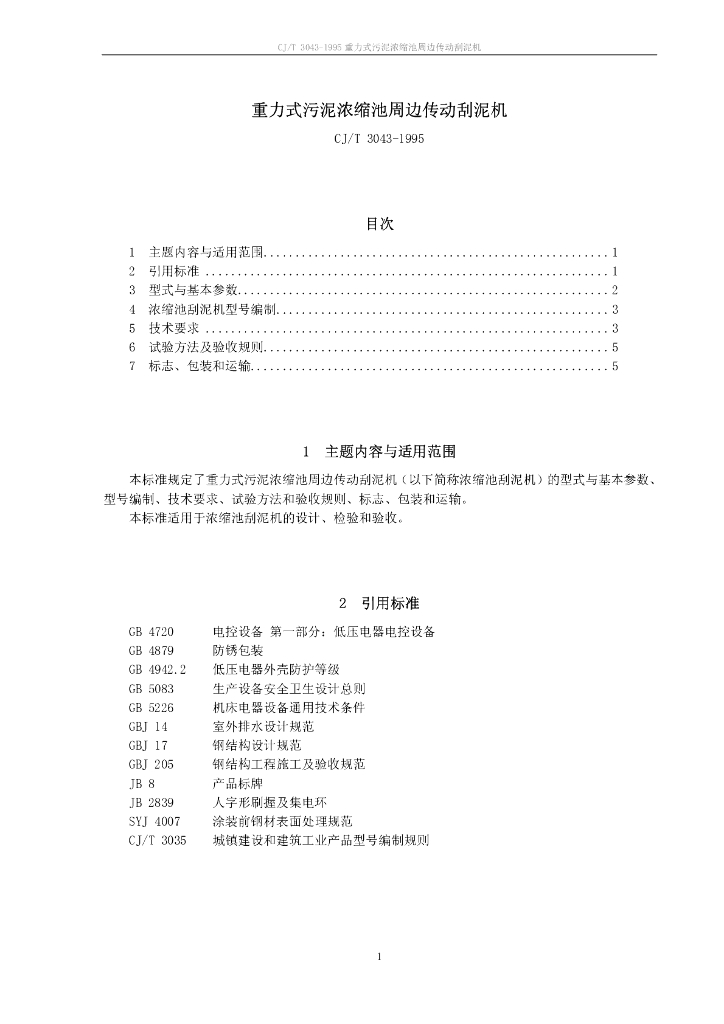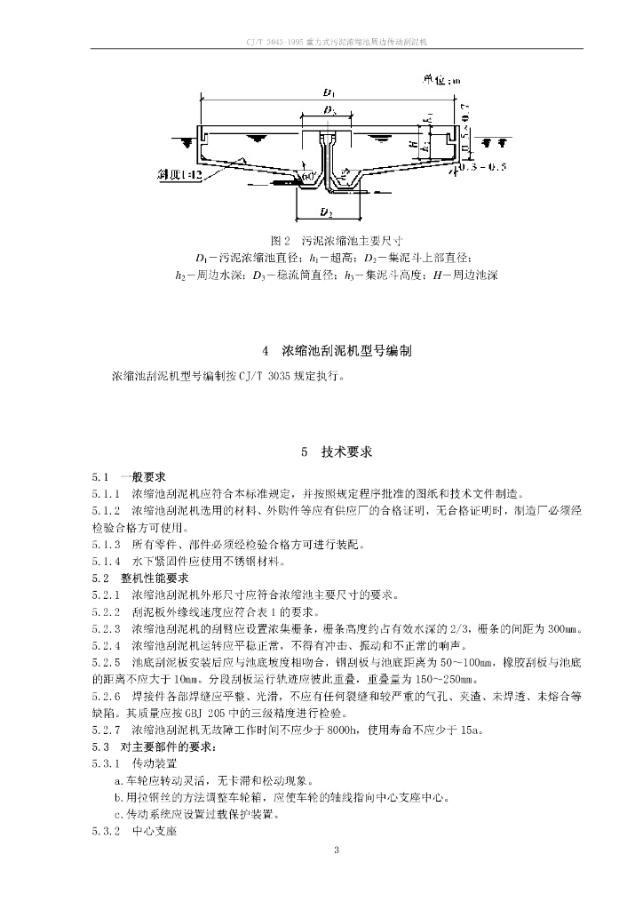 CJ/T 3043-1995 重力式污泥浓缩池周边传动刮泥机