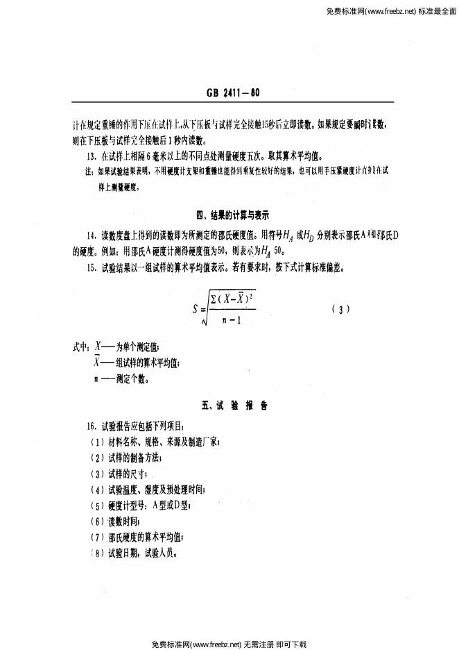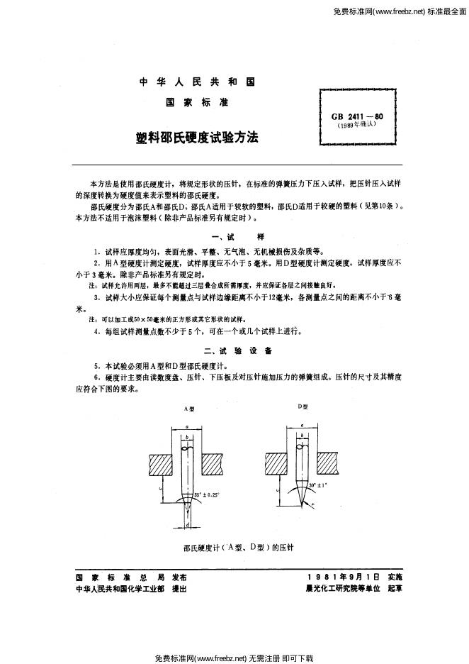 GB/T 2411-1980 塑料邵氏硬度试验方法