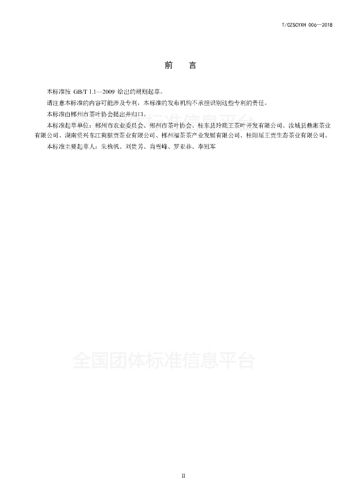 T/CZSCYXH 006-2018 郴州福茶 绿茶