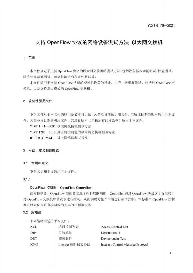 YD/T 6176-2024 支持OpenFlow协议的网络设备测试方法 以太网交换机
