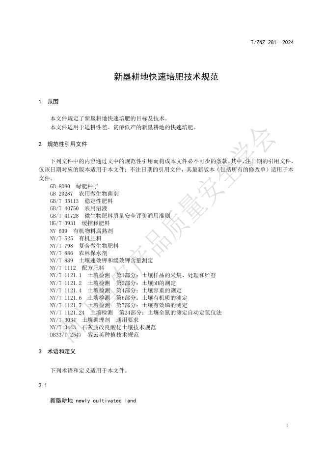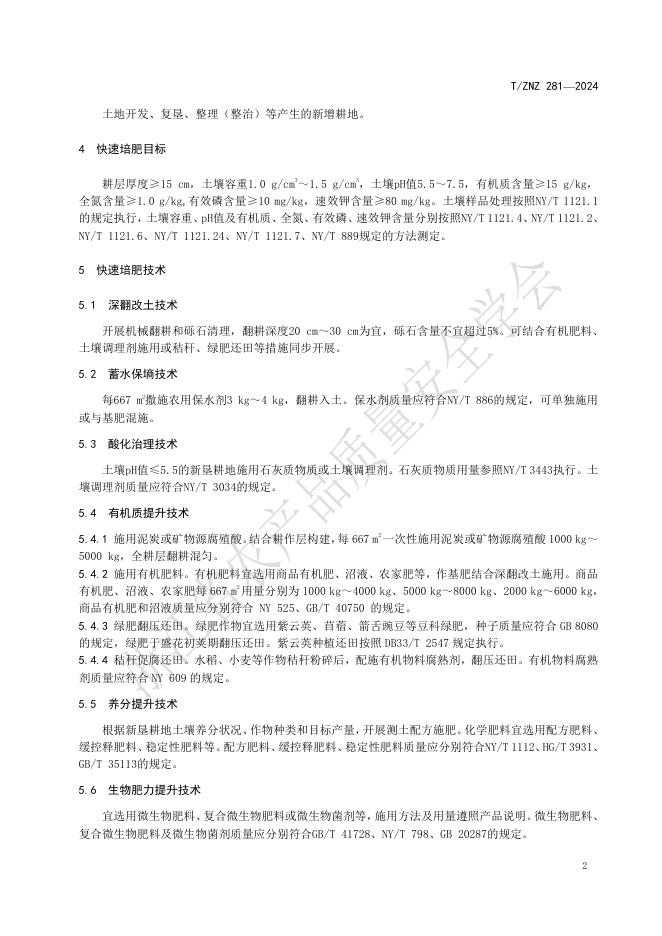 T/ZNZ 281―2024 新垦耕地快速培肥技术规范