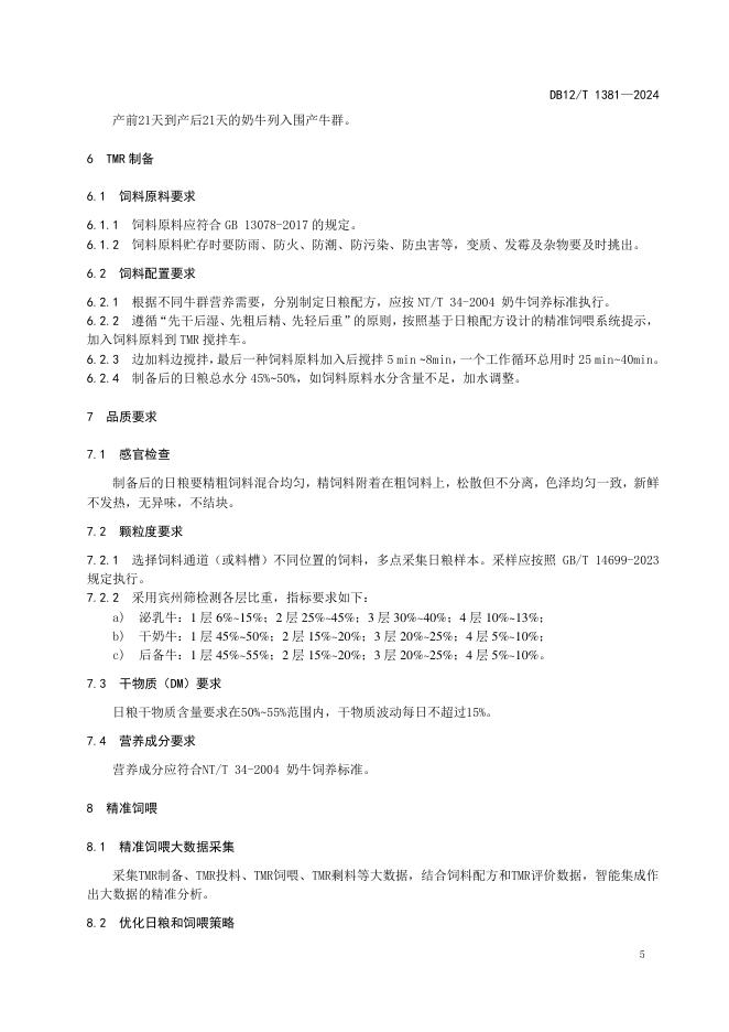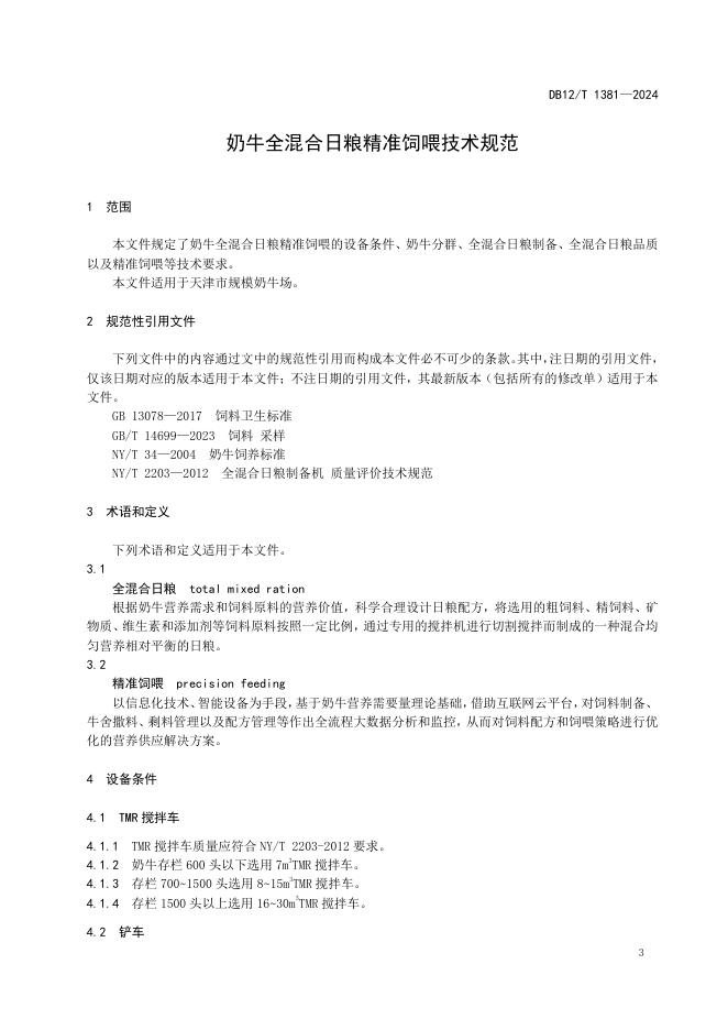 DB12/T 1381-2024 奶牛全混合日粮精准饲喂技术规范