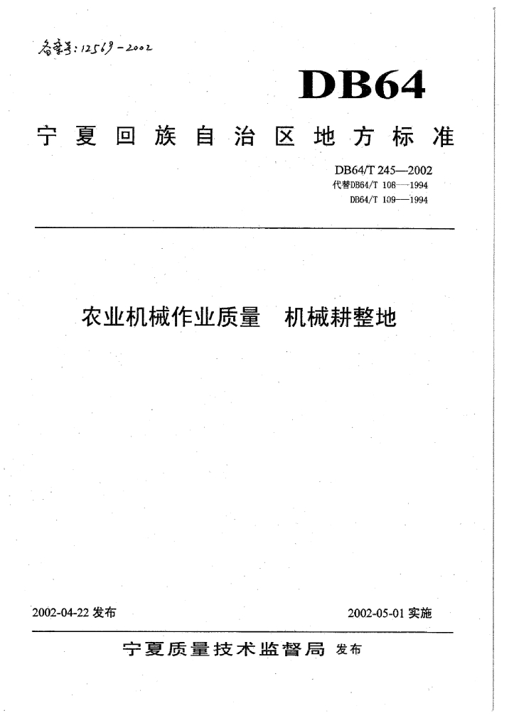 DB64/T 245-2002 农业机械作业质量 机械耕整地
