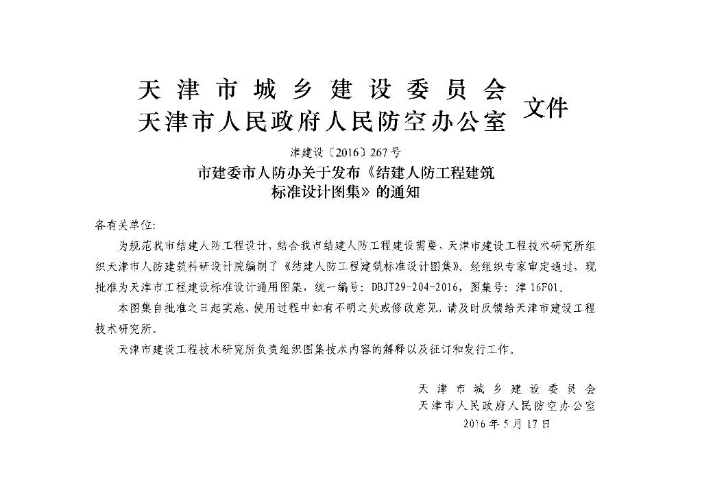 津16F01 结建人防工程建筑标准设计图集(DBJT29-204-2016)