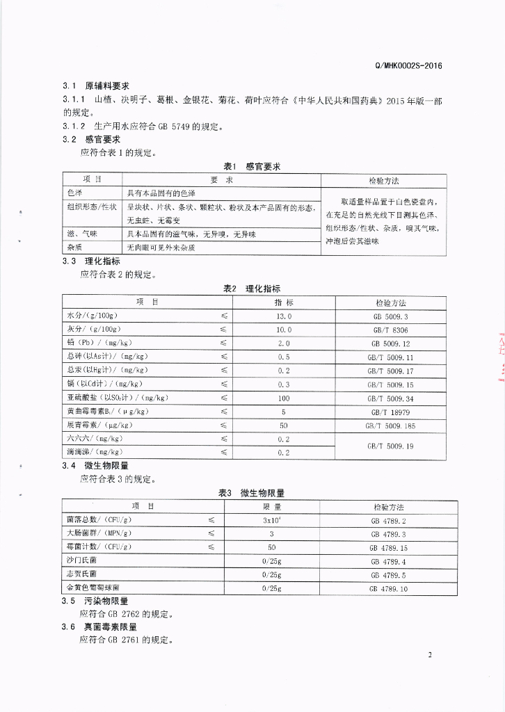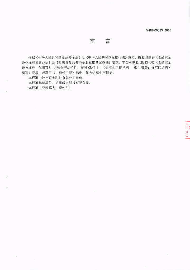 Q/MHK 0002S-2016 泸州岷宏科技有限公司 山楂代用茶