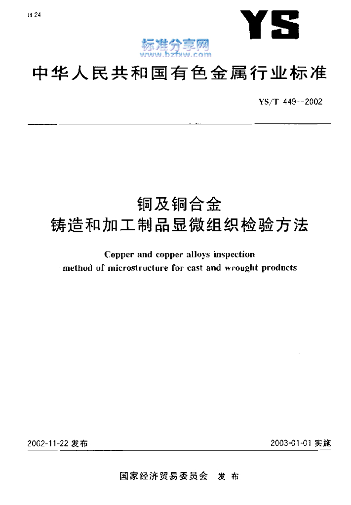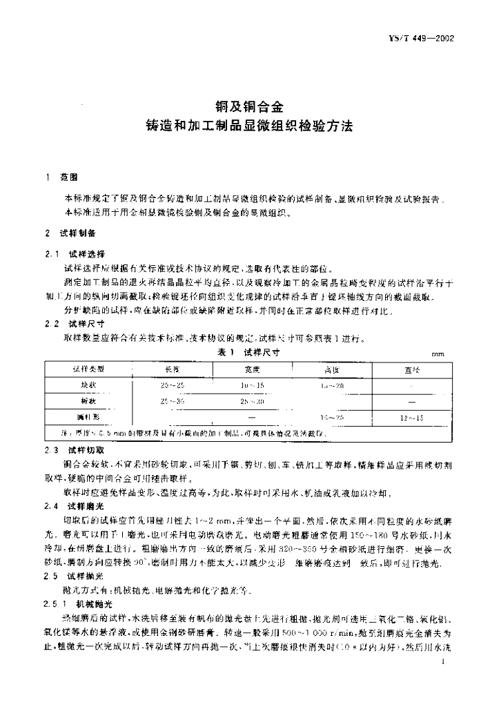 YS/T 449-2002 铜及铜合金铸造和加工制品显微组织检验方法