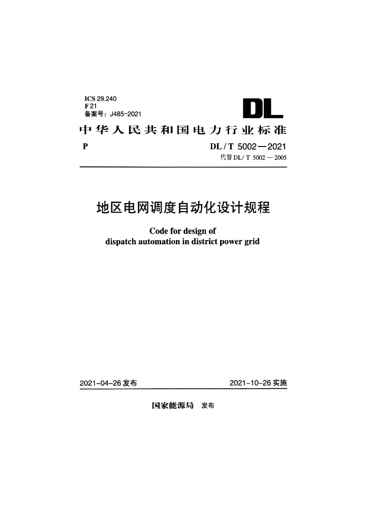DL/T 5002-2021 地区电网调度自动化设计规程