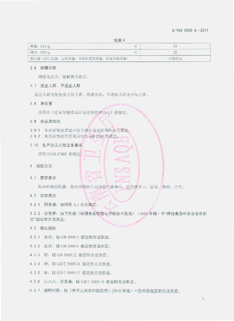 Q/YGX 0005S-2011 金钗石斛洋参胶囊