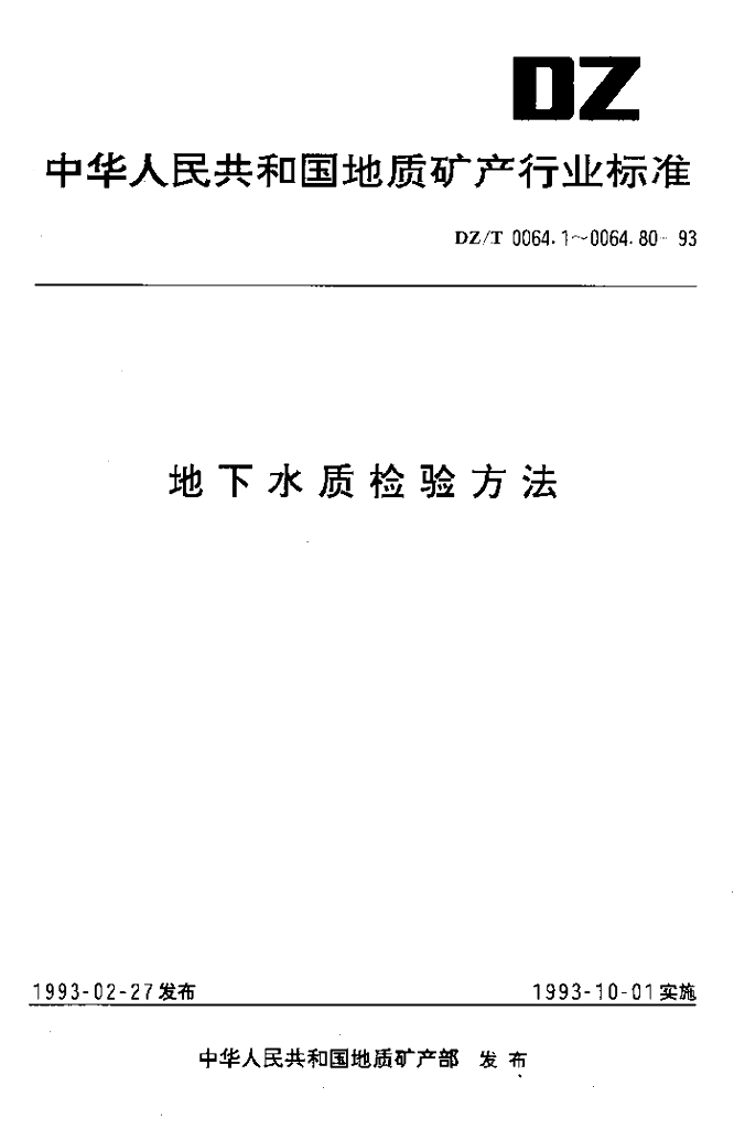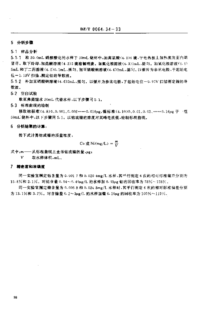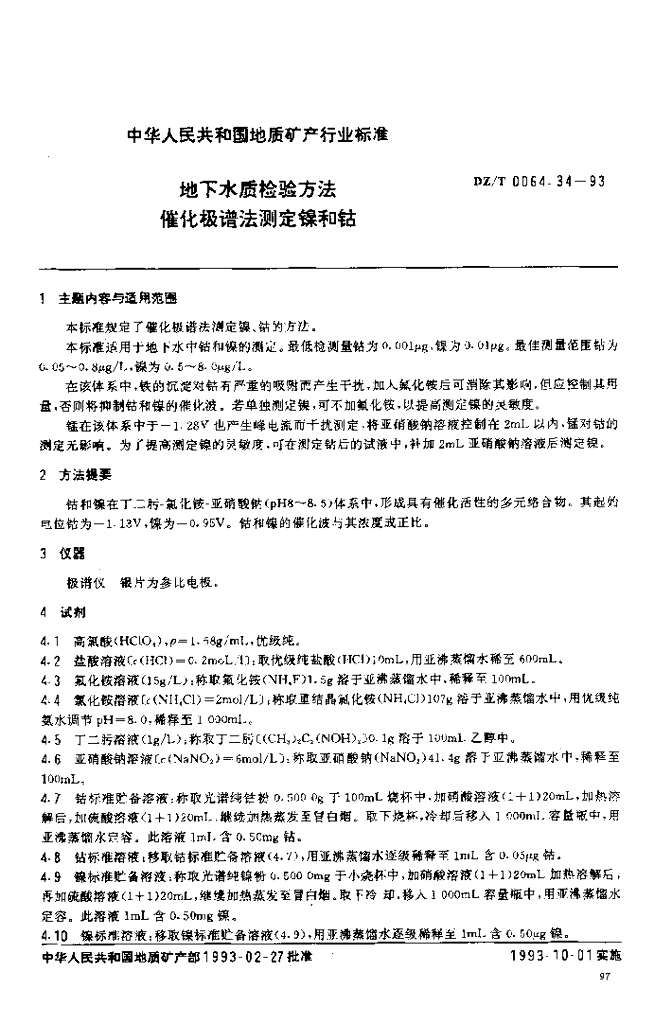DZ/T 0064.34-1993 地下水质检验方法催化极谱法测定镍和钴