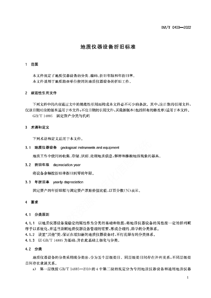 DZ/T 0403-2022 地质仪器设备折旧标准