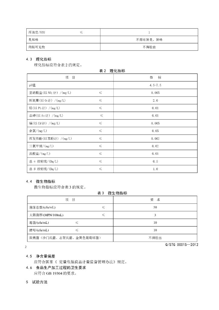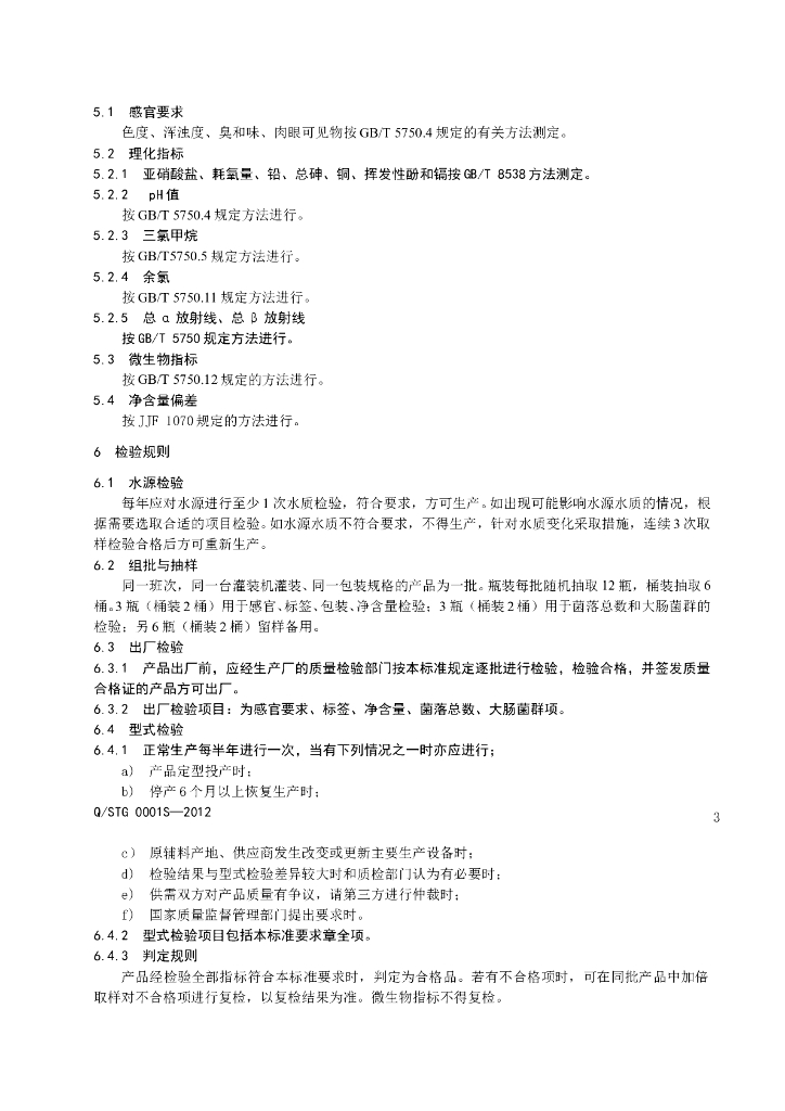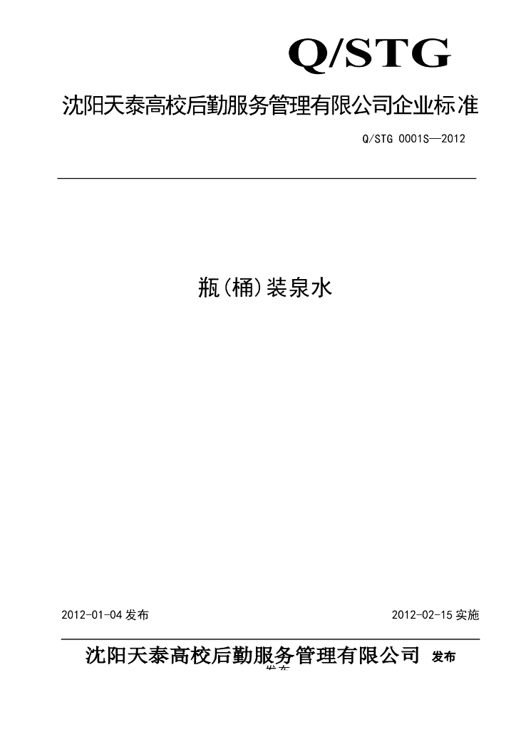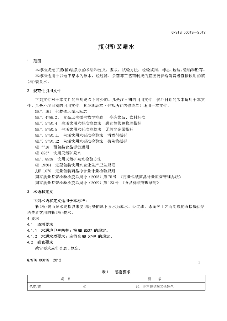 Q/STG 0001S-2012 瓶(桶)装泉水