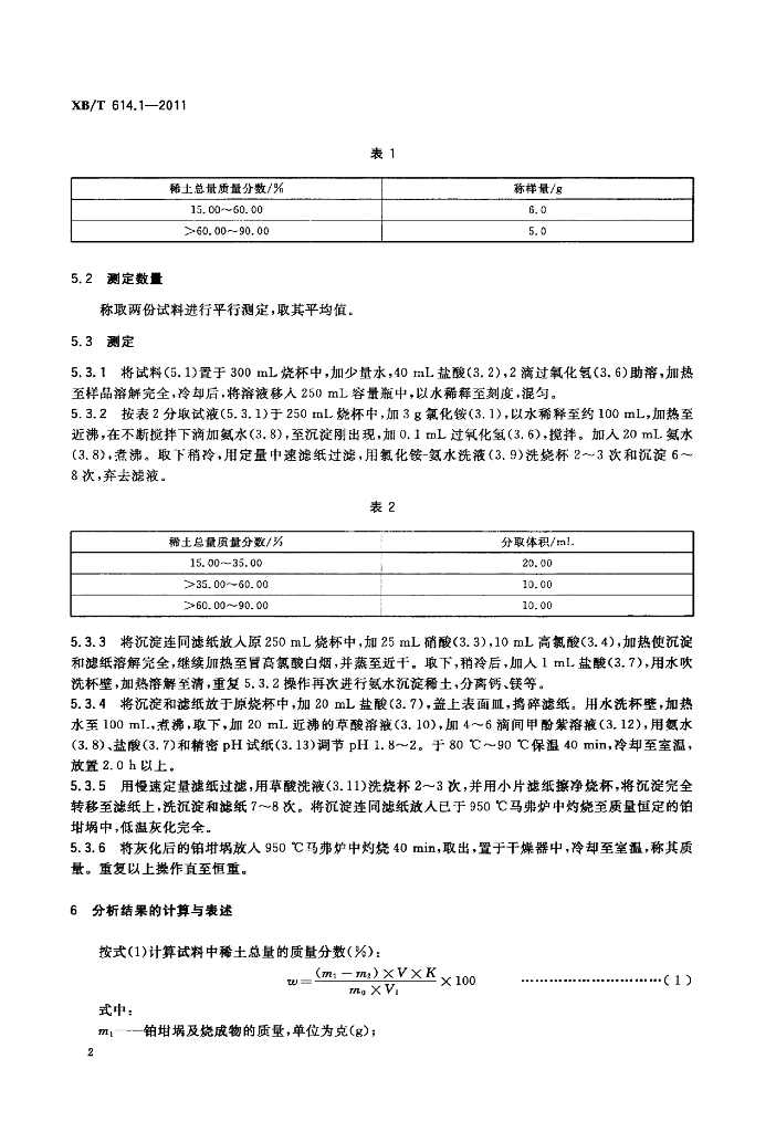 XB/T 614.1-2011 钆镁合金化学分析方法 第1部分:稀土总量的测定 重量法