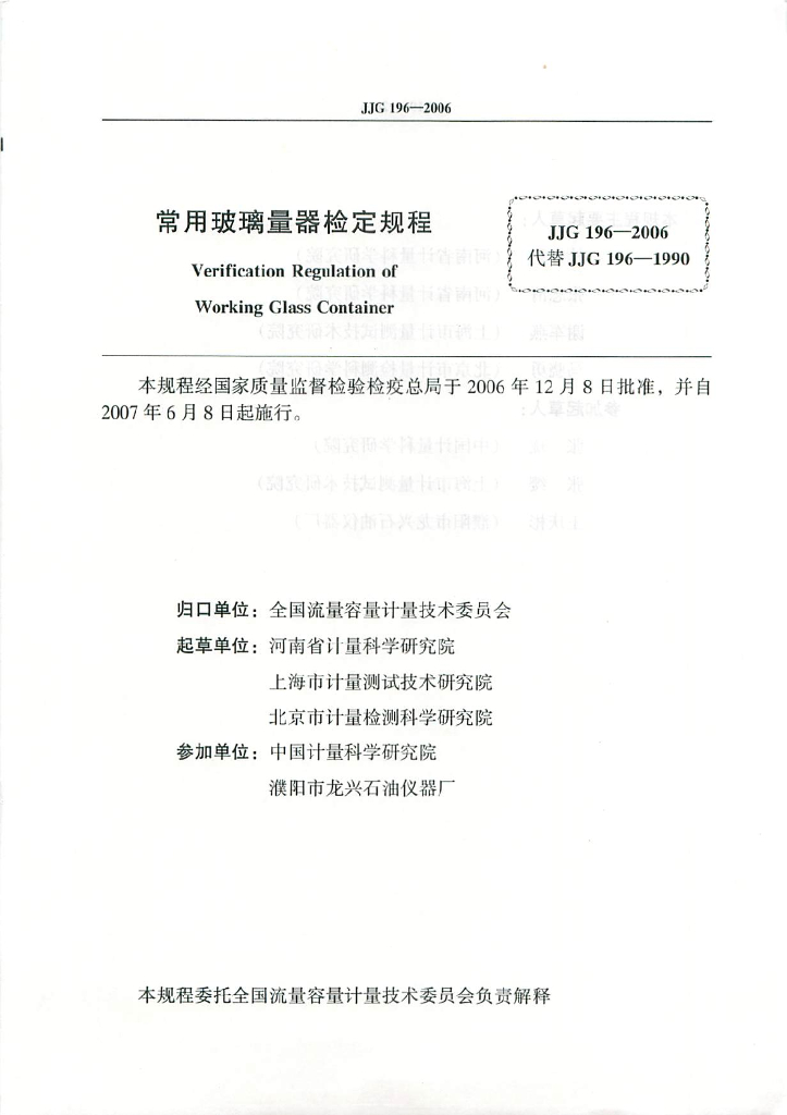 - 代替标准:JJG 196-1990