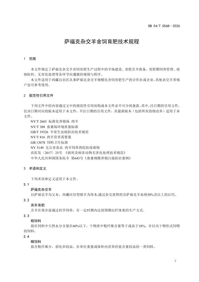 DB54/T 0568-2026 萨福克杂交羊舍饲育肥技术规程