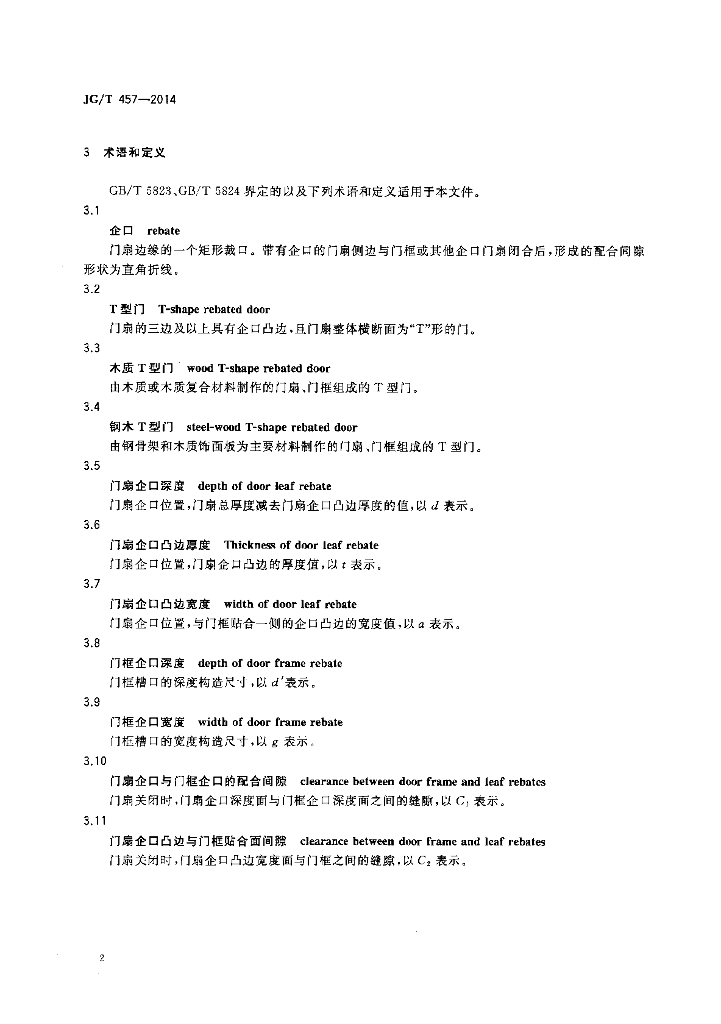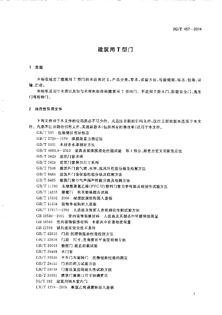 JG/T 457-2014 建筑用T型门