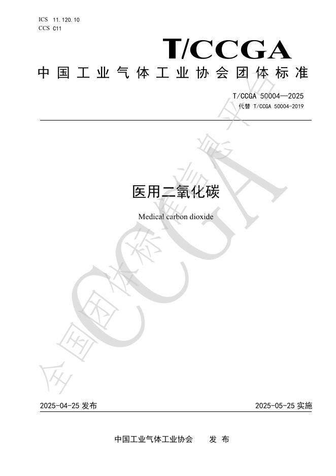 T/CCGA 50004-2025 医用二氧化碳