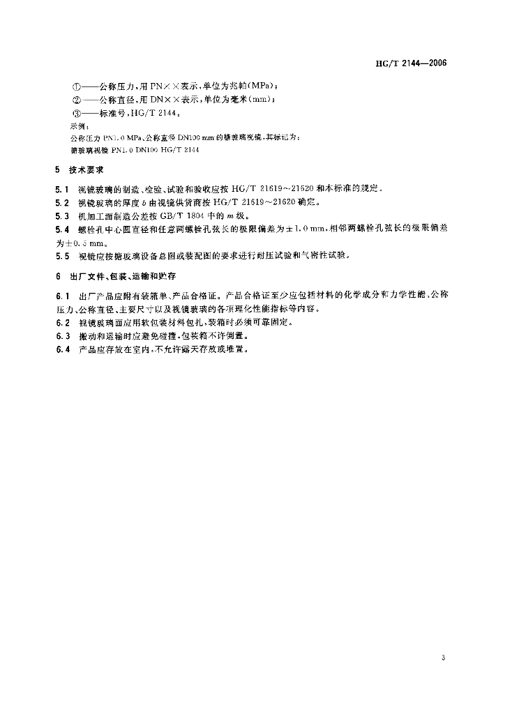 HG/T 2144-2006 搪玻璃设备 视镜