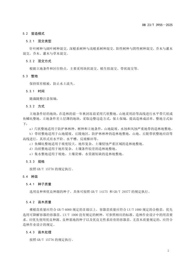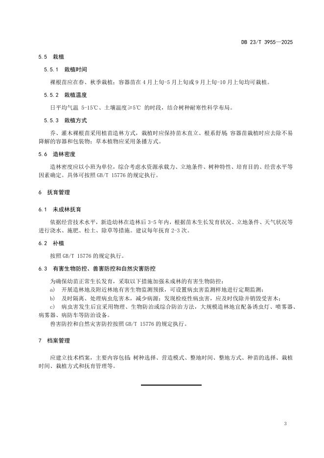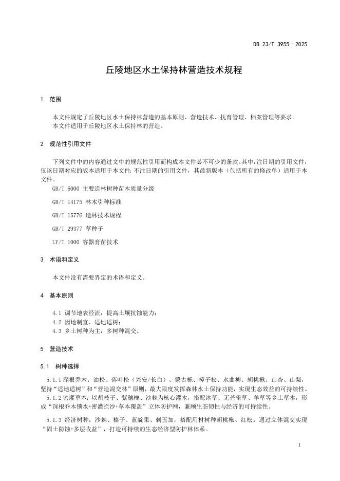 DB23/T 3955-2025 丘陵地区水土保持林营造技术规程